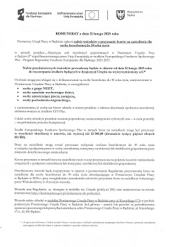 Nabór wniosków o przyznanie bonu na zasiedlenie dla osoby bezrobotnej do 30 roku życia prowadzony będzie w okresie od dnia 12 lutego 2025 roku do wyczerpania środków będących w dyspozycji...