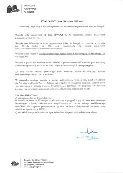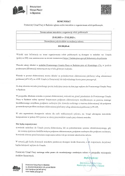 Powiatowy Urząd Pracy w Będzinie ogłasza nabór wniosków o organizowanie robót publicznych. Wnioski będą przyjmowane od dnia 01.07.2025 r. do wyczerpania środków finansowych przeznaczonych na...