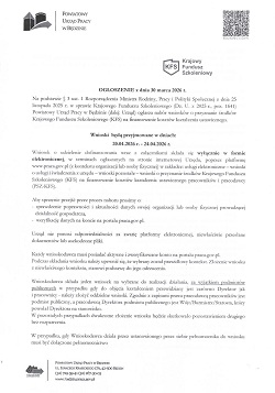 Wniosek o udzielenie dofinansowania wraz z załącznikami skalda się wyłącznie w formie elektronicznej w terminach ogłaszanych na stronie internetowej Urzedu. Wnioski będą przyjmowane w dniach...