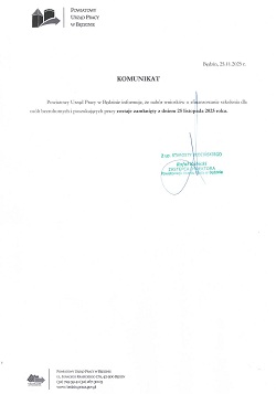 Powiatowu Urząd Pracy w Będzinie informuje, że nabór wnioskow o organizowanie prac interwencyjnych zostaje wstrzymany z dniem 04.03.2026 r.