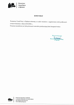 Informacja o wstrzymaniu naboru o organizowanie robót publicznych