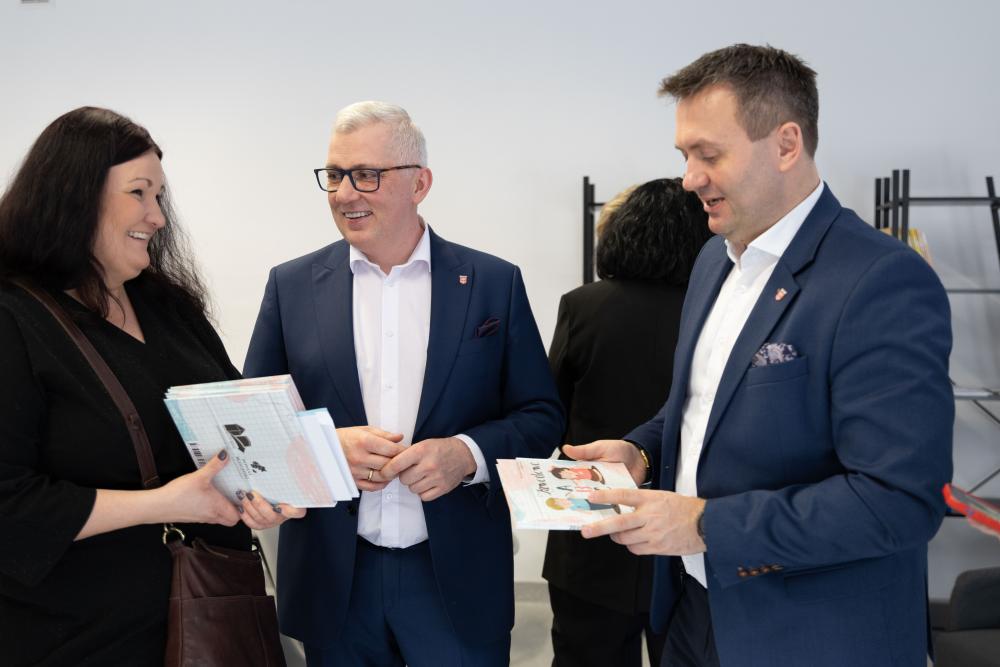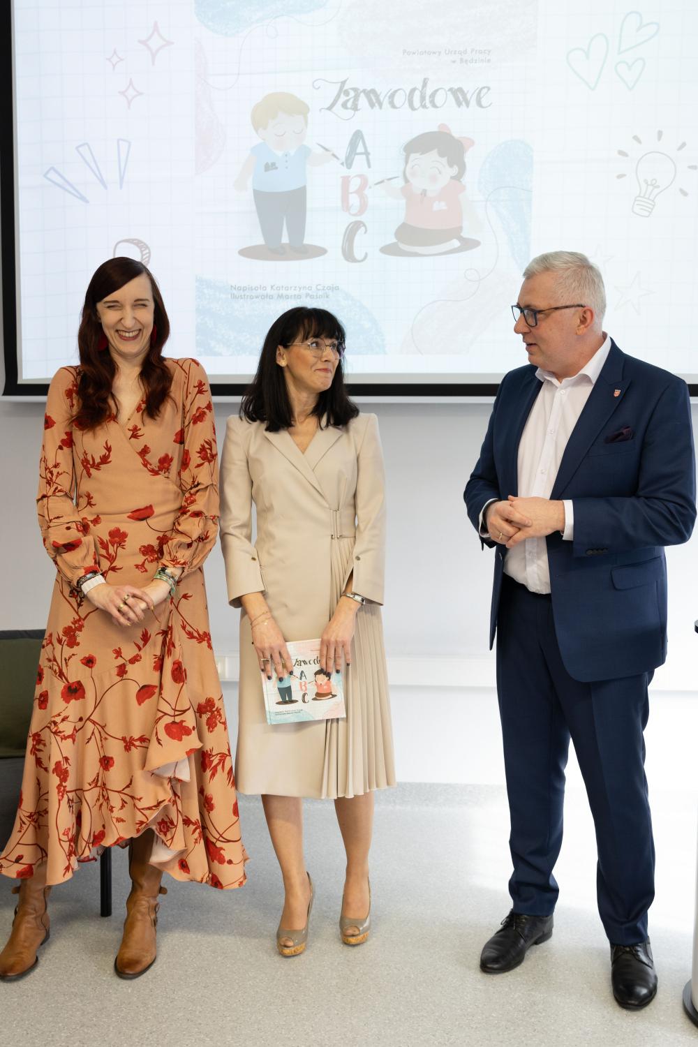 Premierę swoją obecnością uświetnili: Starosta Będziński Pan Sebastian Szaleniec, oraz Pani Halina Mentel i Pani Bożena Łapaj. Oprócz przedstawicieli Rady Powiatu Będzińskiego, na nasze wydarzenie zaprosiliśmy dyrektorów placówek przedszkolnych i bibliotek z całego powiatu, gościem specjalnym była natomiast Dyrektor Teatru Dormana w Będzinie Agnieszka Raj-Kubat, która podczas wydarzenia odczytała wiersz o aktorze pochodzący z naszej książki!