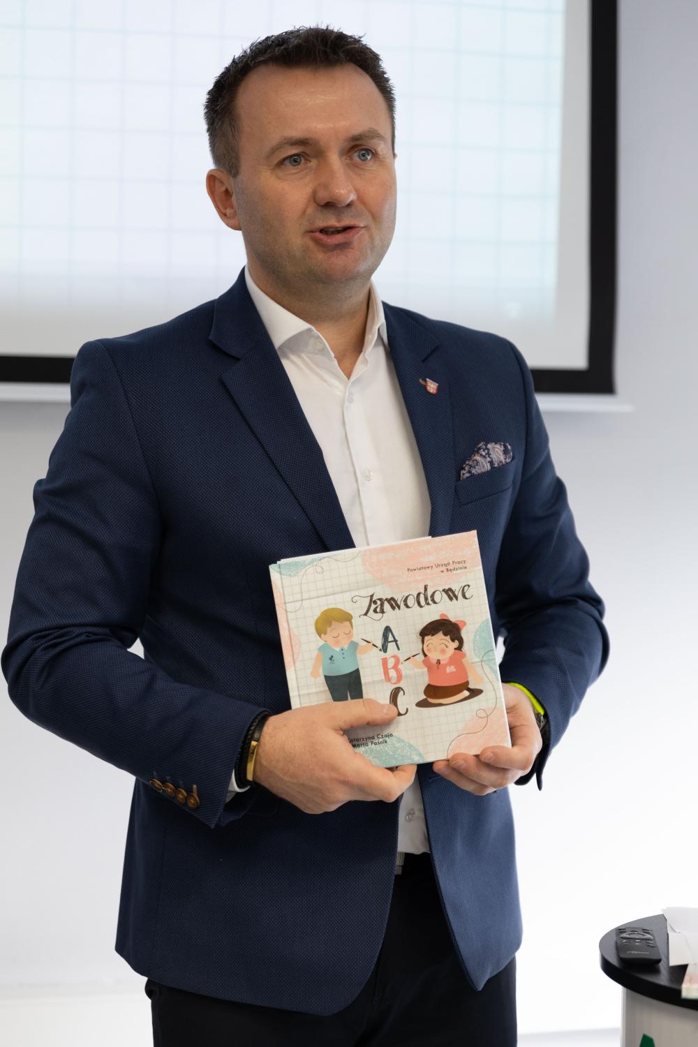 Nasze wydarzenie otworzył Dyrektor Powiatowego Urzędu Pracy w Będzinie Pan Wojciech Olesiński, którzy przedstawił garść danych dotyczących potrzeby zapoznawania najmłodszych ze światem zawodów i podnoszenia świadomości na temat wyboru ścieżki kształcenia.
