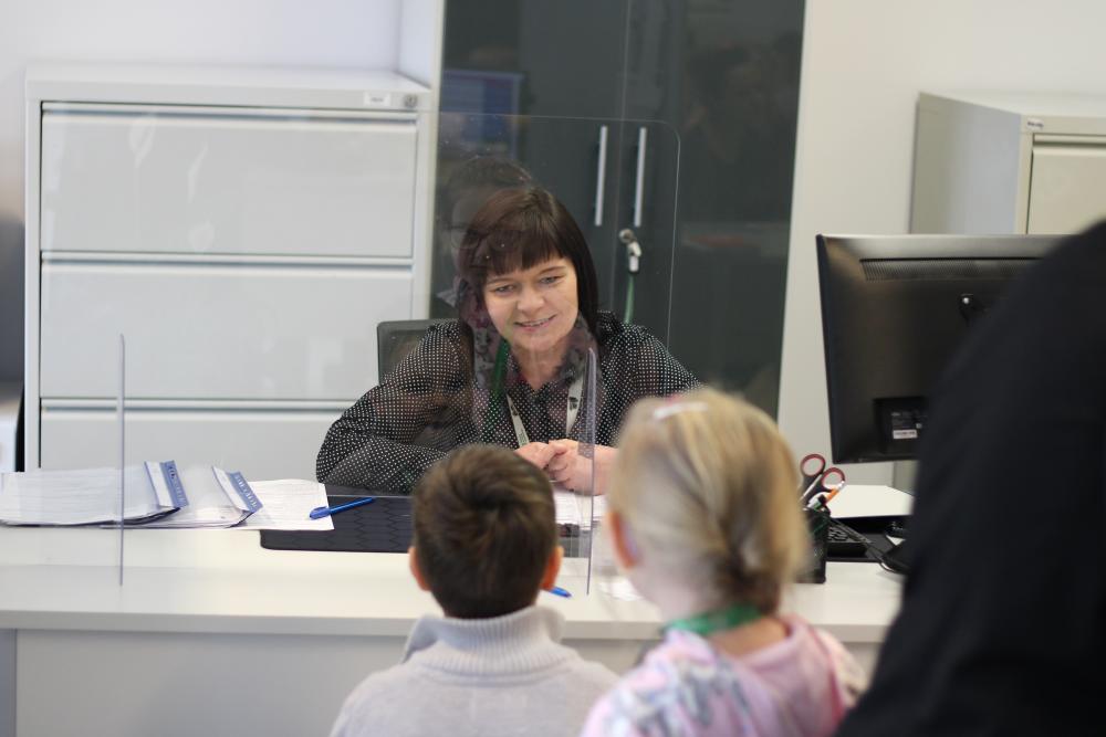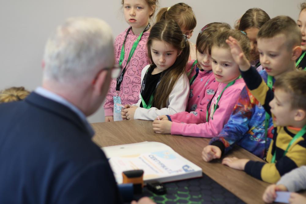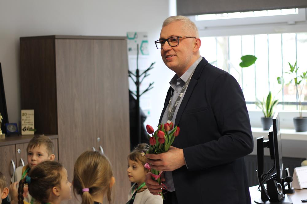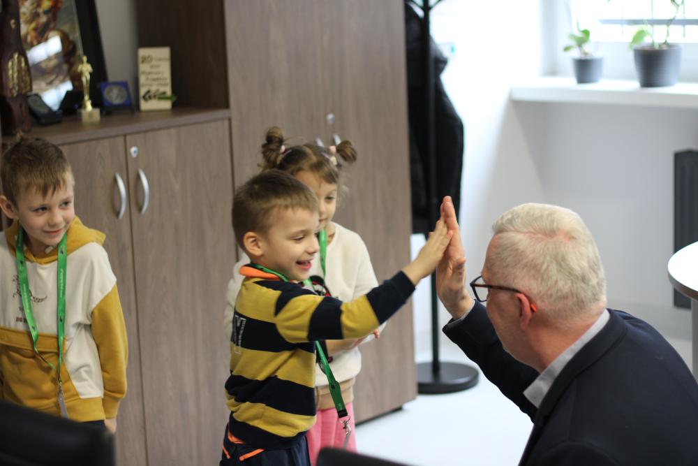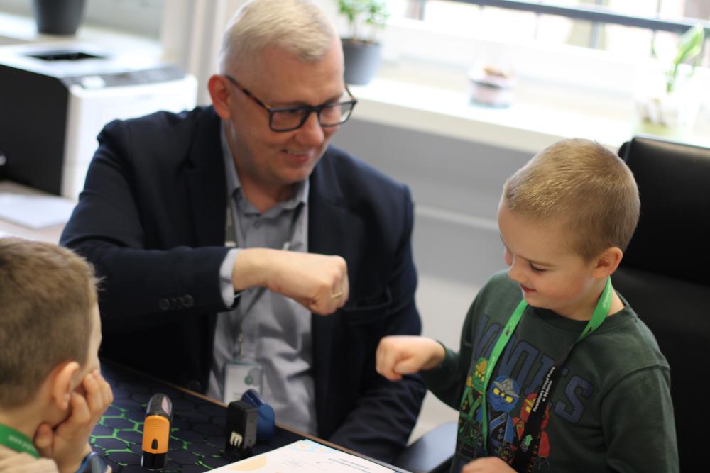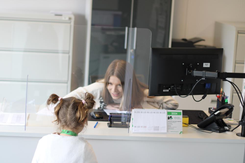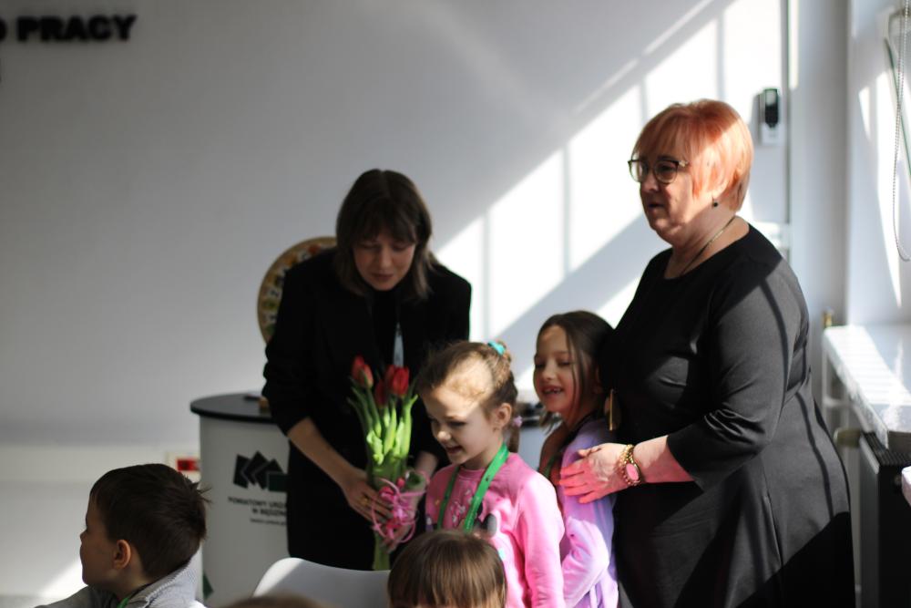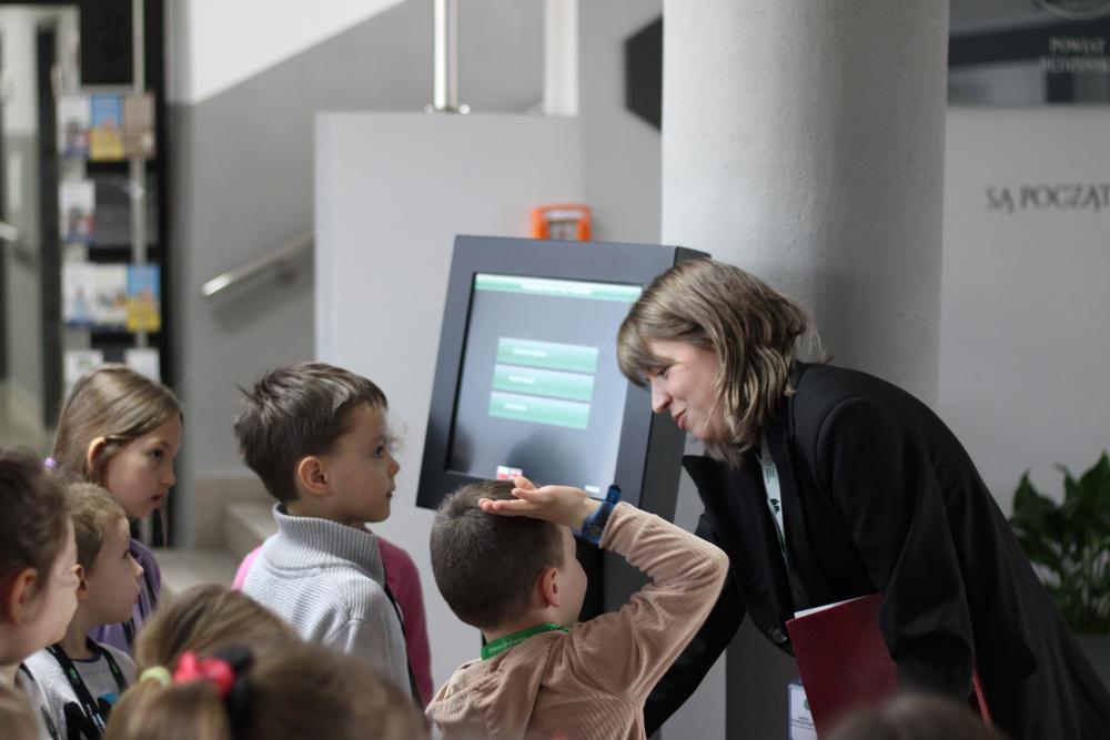 Podczas wizyty w naszym Urzędzie dzieci przywitał także Zastępca Dyrektora do spraw Organizacyjno-Administracyjnych Pan Rafał Kubicki, a oprowadzała je Doradczyni Zawodowa Marta Staroszyńska. Dzieci mogły poznać specyfikę pracy doradcy zawodowego, pobrać numerek systemu kolejkowego, a także opowiedzieć nam, kim chciałyby zostać w przyszłości:)