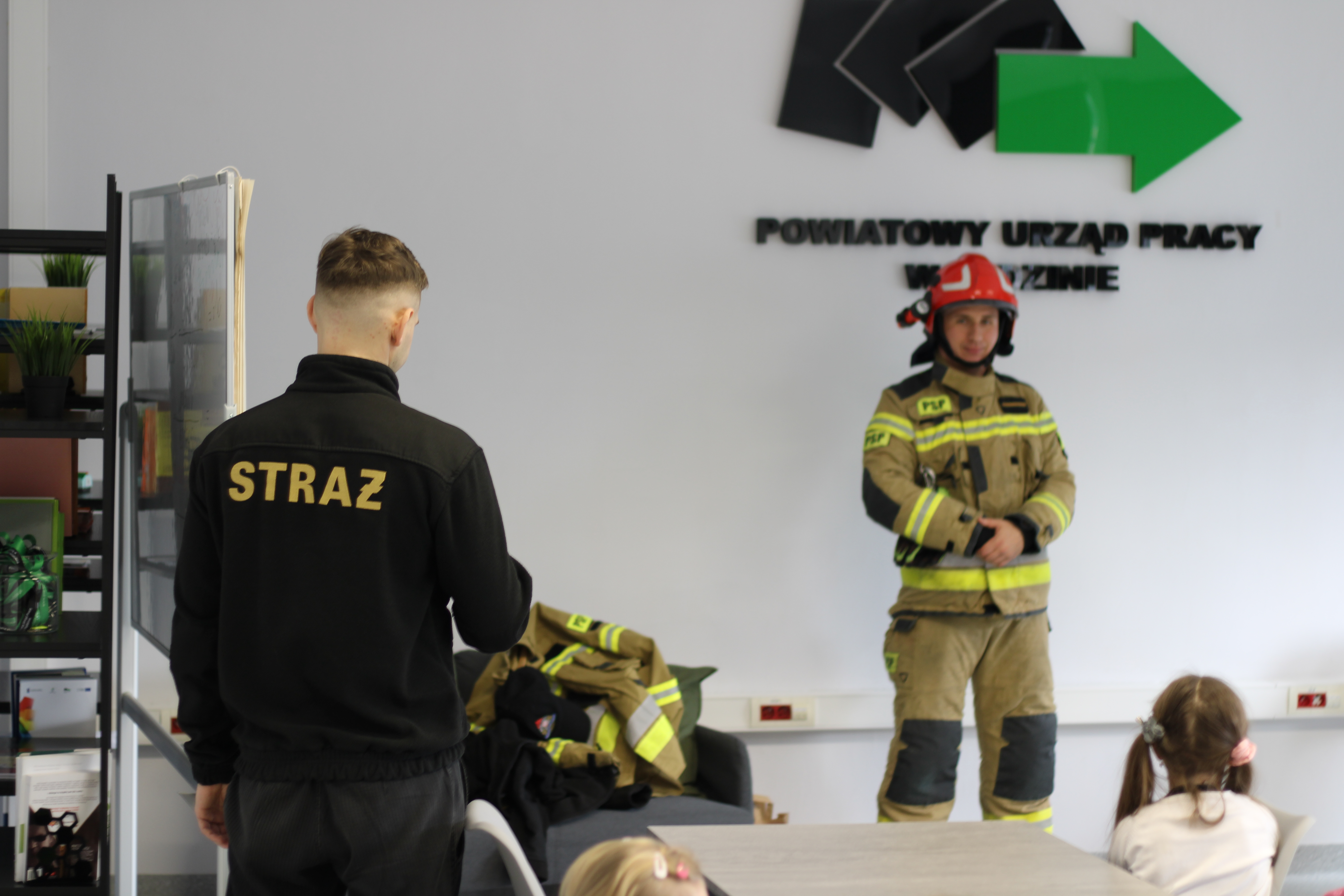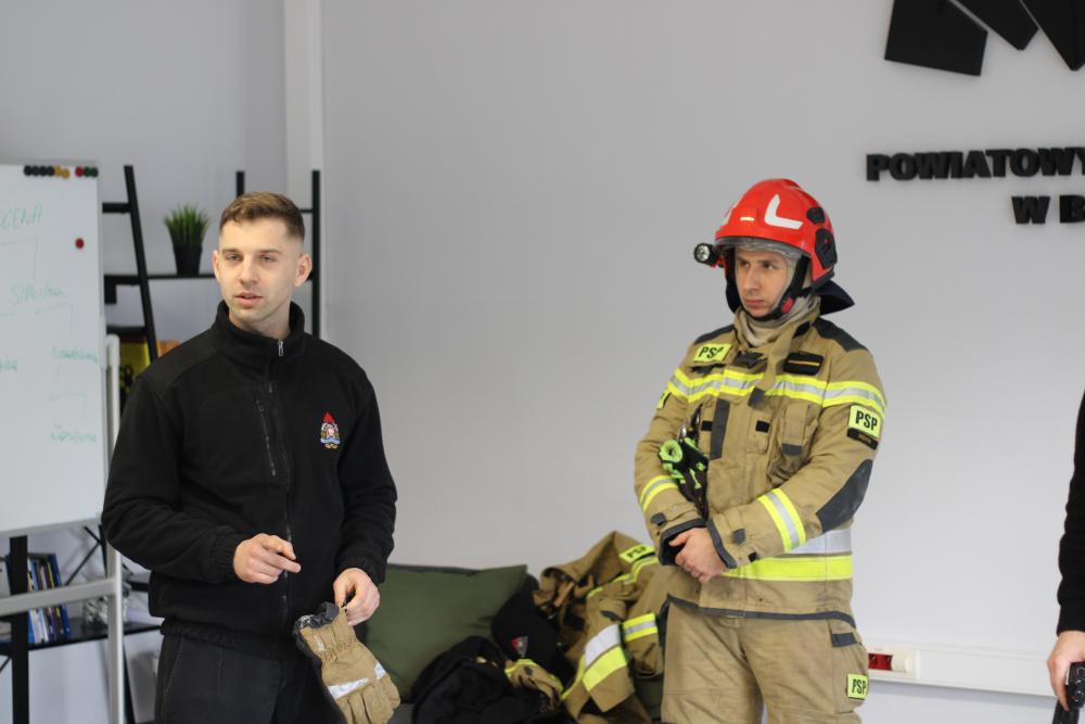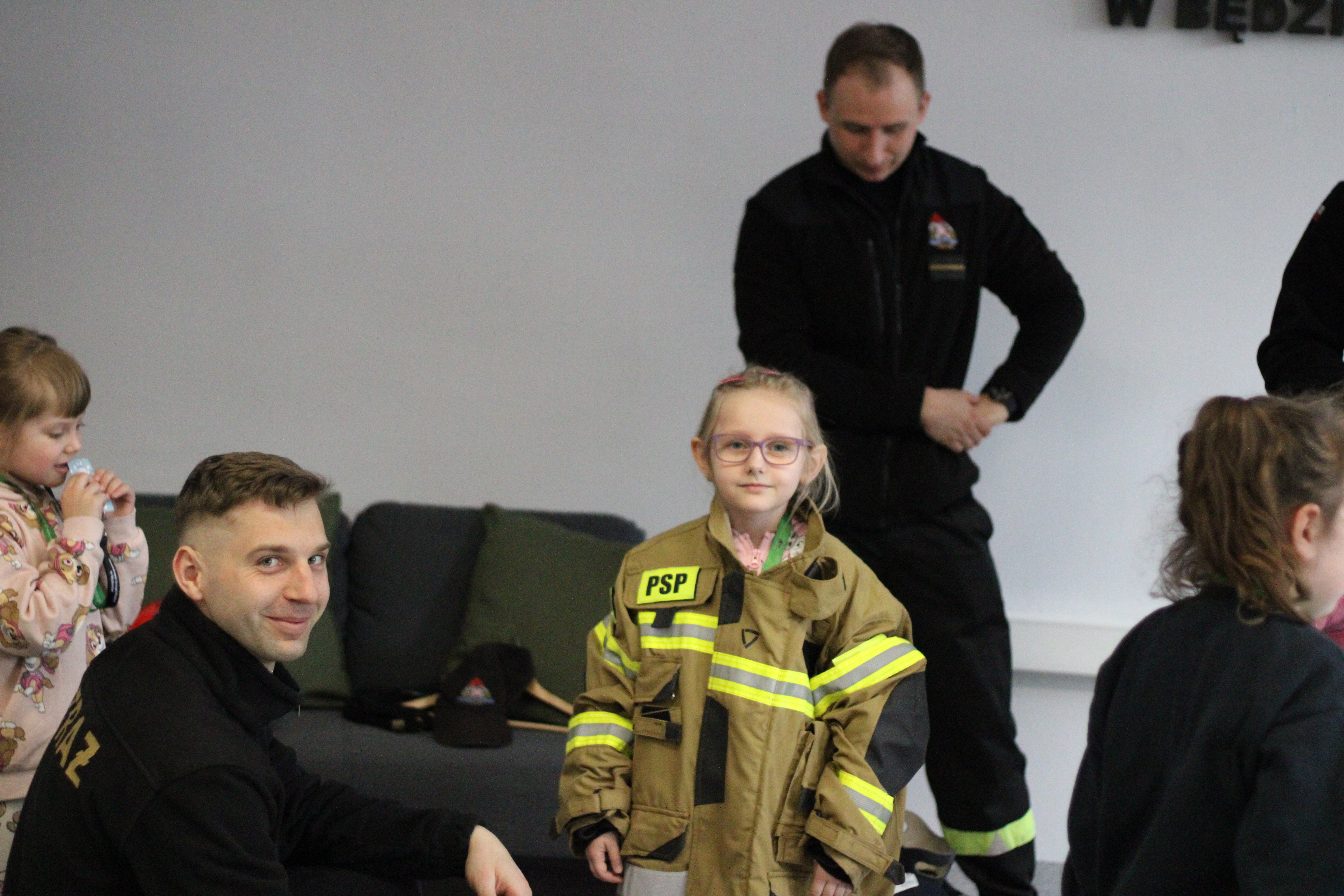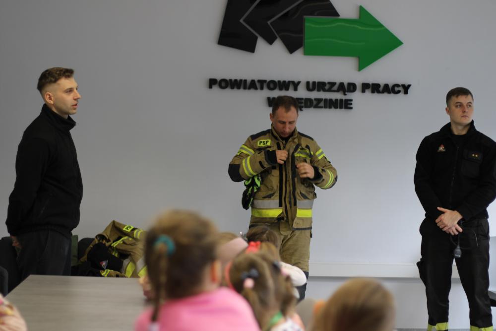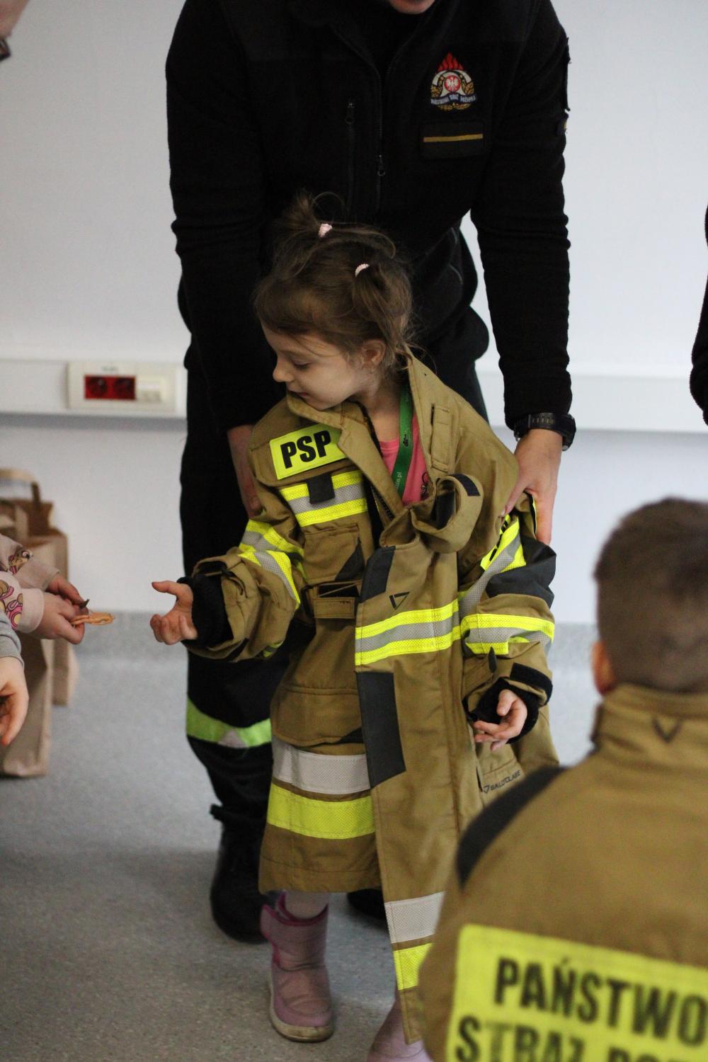 Specjalną niespodzianką było spotkanie ze strażakami z Komendy Powiatowej Państwowej Straży Pożarnej w Będzinie. Nasi goście zaprezentowali ekwipunek, który mają na sobie podczas akcji gaśniczej, opowiedzieli także o tym, jakie zwierzęta ściągają z drzew najczęściej, a także zdradzili co trzeba zrobić, żeby zostać w przyszłości strażakiem!