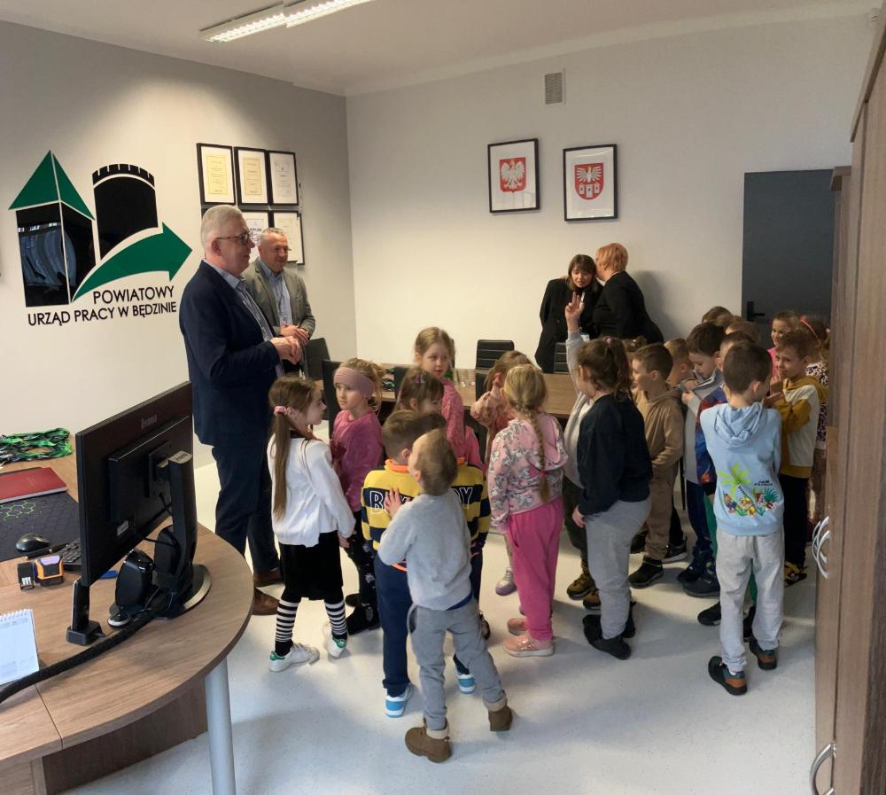 Po raz kolejny Powiatowy Urząd Pracy w Będzinie odwiedzili mali goście z Przedszkola Miejskiego nr 9 w Będzinie - tym razem, na specjalne zaproszenie Dyrektora, swoją obecnością zaszczyciły nas dzieci z grupy Eksperci.