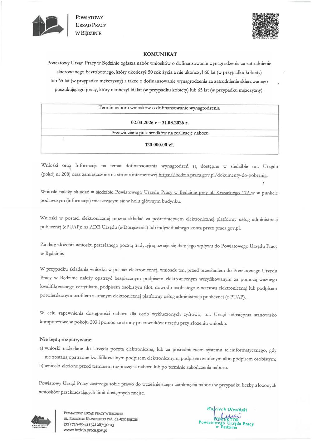 Nabór wniosków o dofinansowanie wynagrodzenia 50+ oraz 60+