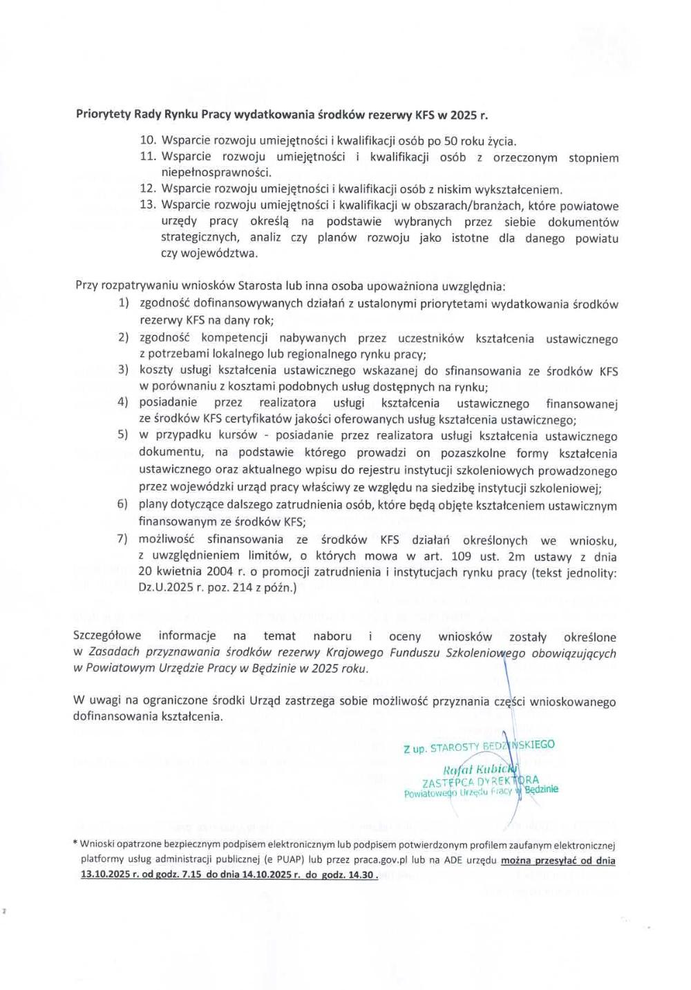 Nabór wniosków o przyznanie środków na sfinansowanie kosztów kształcenia ustawicznego pracowników i pracodawców w ramach KFS - Powiatowy Urząd Pracy w Będzinie
