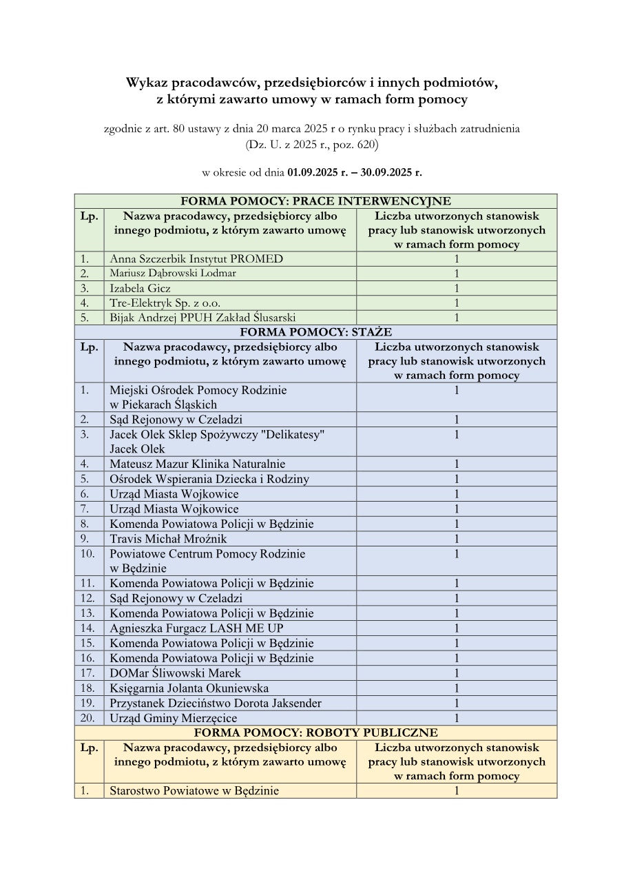 Wykaz - Wrzesień 2025 - Powiatowy Urząd Pracy w Będzinie